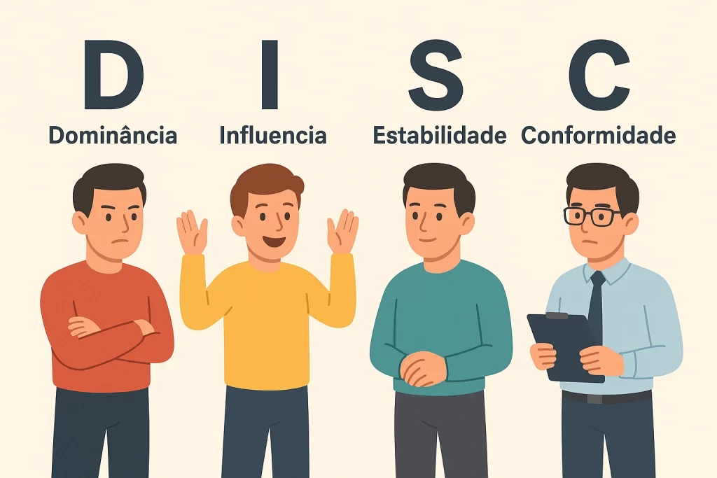 A sigla DISC se refere aos perfis: (D = Dominância), (I = Influência), (S = Estabilidade) e (C = Conformidade).